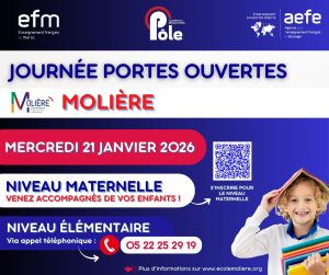 Avant les Journées Portes Ouvertes, qui auront lieu du 15 au 29 janvier 2026, le Pôle Casablanca-Mohammedia propose également deux webinaires dinformation ouverts à toutes les familles, en présence  des chefs d’établissement : en savoir plus en cliquant ICI.