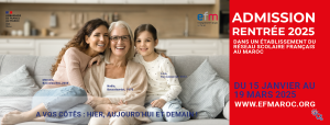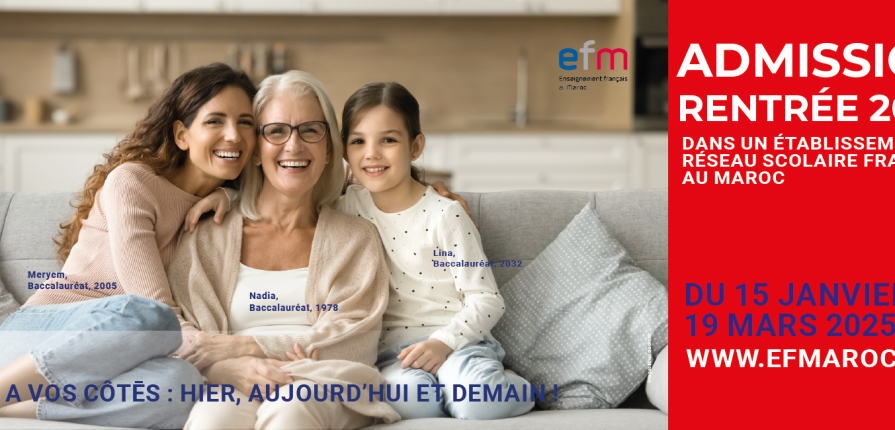 Chers parents, vous êtes désireux d’inscrire votre enfant pour la première fois au sein d’un établissement du réseau scolaire français au Maroc : la campagne des admissions pour la rentrée 2025 est ouverte à partir du mercredi 15 janvier jusqu’au 19 mars 2025.