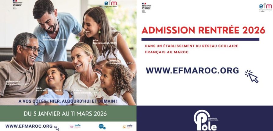 Dès aujourd’hui, nous vous invitons à rejoindre le réseau de l’enseignement français au Maroc , fort de plus de 100 ans d’expérience et reconnu pour la qualité de son enseignement, ouvert sur le monde tout en restant profondément attaché à son histoire avec le Maroc.